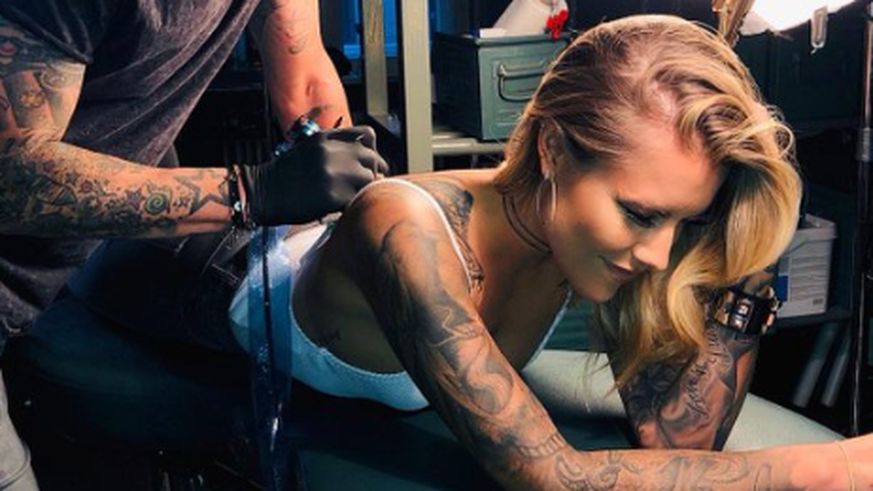 Sie hat sich unter die nadel gelegt und ihren arm mit einem weiteren großen tattoo verzieren lassen.