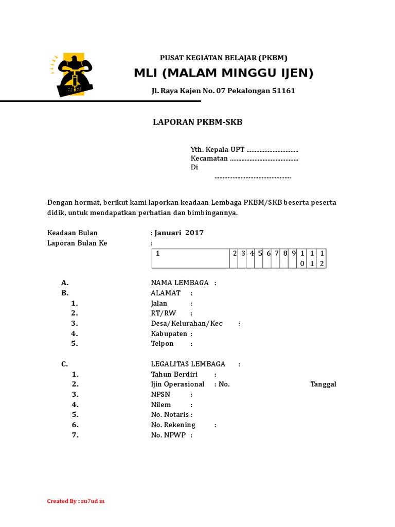 Lampiran 38 contoh laporan keuangan barang dan jasa lampiran 39 contoh rencana penggunaan anggaran biaya operasional pendidikan (bop)/sekolah (bos) lampiran 40 contoh laporan keuangan bop/bos lampiran 41 contoh format buku kas umum bulanan lampiran 42 contoh format buku pembantu kas bulanan lampiran 43 contoh format buku pembantu bank bulanan Apr 23, 2019 · contoh laporan singkat kegiatan jika kita bekerja pada sebuah institusi atau berorganisasi di sekolah setiap kegiatan yang diselenggarakan baik itu kegiatan pelatihan bakti sosial pramuka lomba 17 agustus dan acara acara lainnya pasti selalu dimintai pertanggungjawabannya entah itu berupa laporan tertulis ataupun dokumentasi berupa foto. Sekarang keluarga yang kepala keluarganya meninggal, hilang atau pindah dilaporkan di laporan bulanan pada bulan sesuai dengan tanggal lapor peristiwa yang bersangkutan. Laporan keuangan bulanan tidak perlu 2. Laporan arus kas laporan arus kas disusun dengan menggunakan metode langsung (direct method).